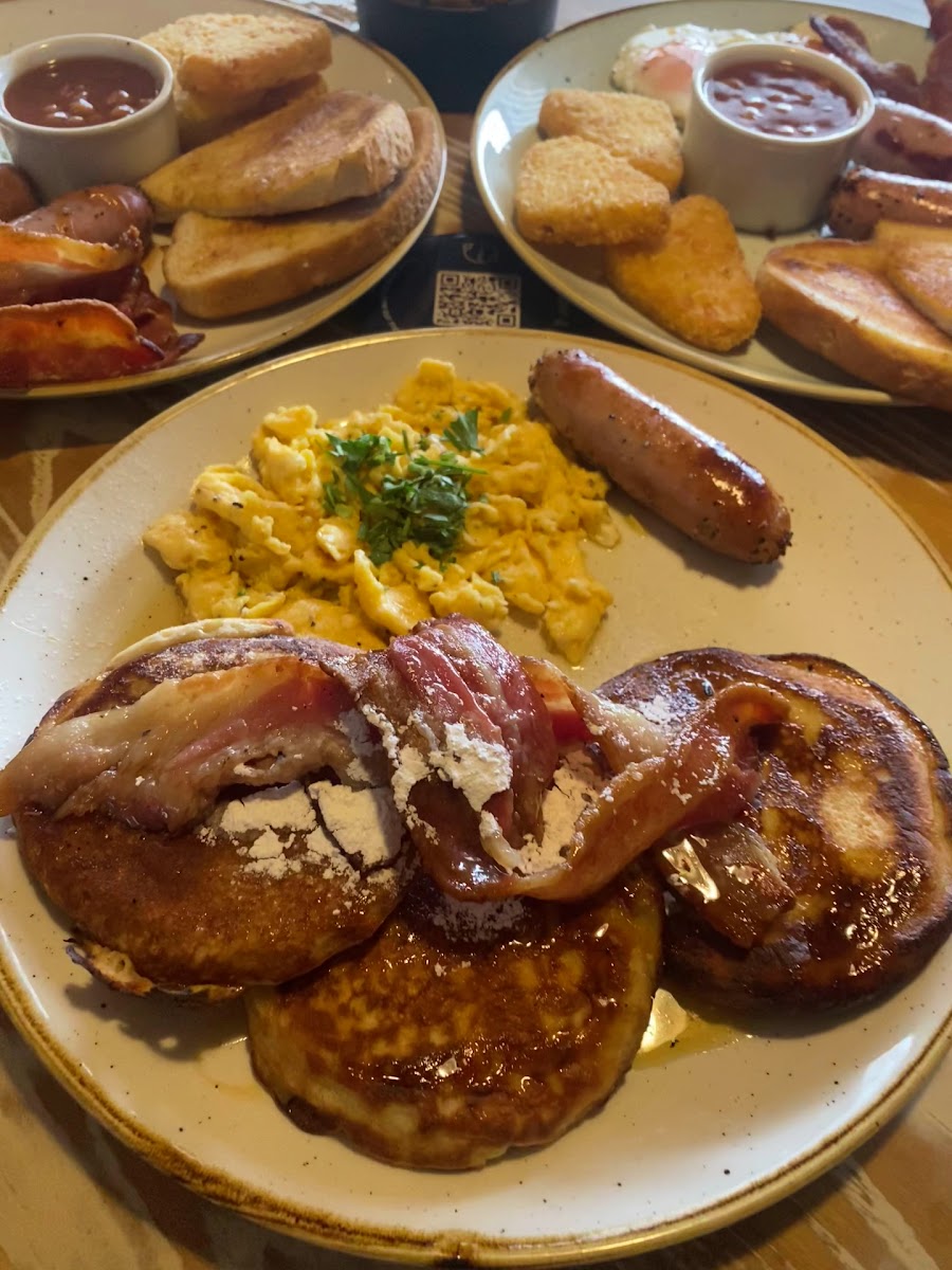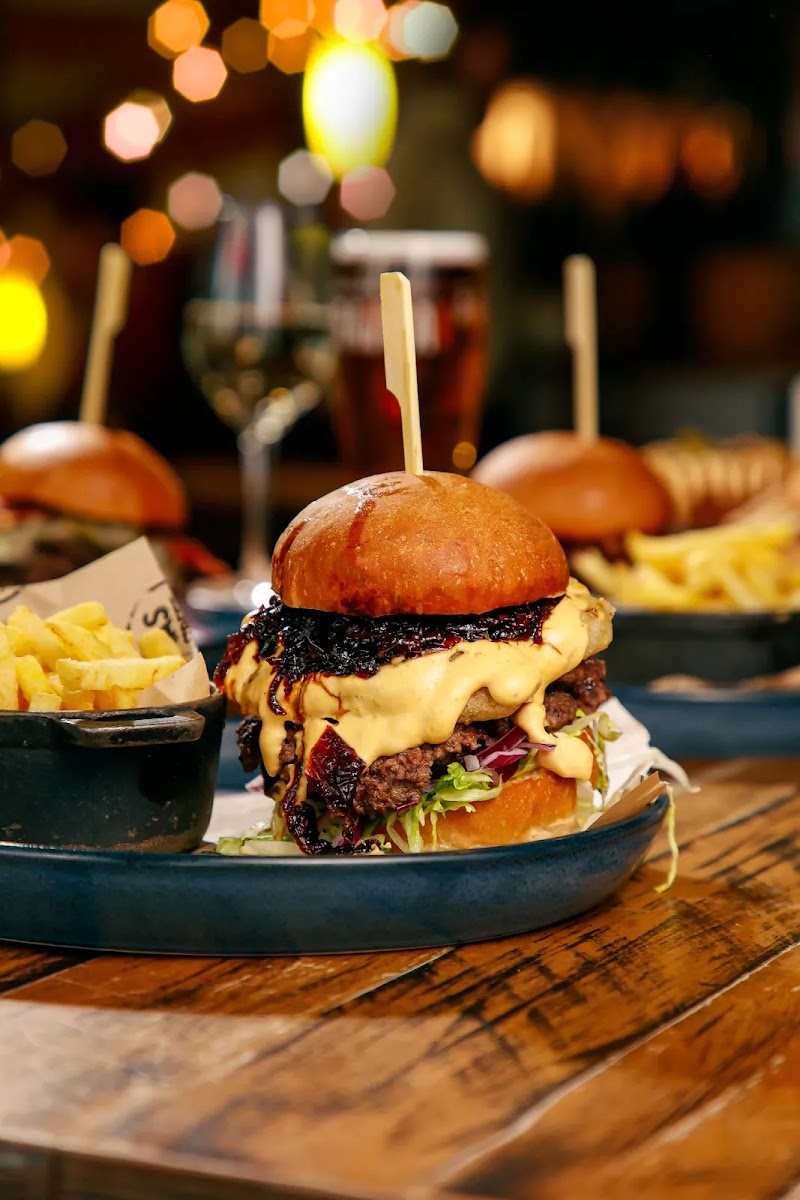 Lunch and dinner bring even more to the table-literally. Think Beer-battered Fish & Chips served with mushy peas and tartare sauce, or their indulgent Loaded Fries topped with pulled pork, cheese, and jalapeños. Craving American comfort food? Try the Fried Chicken and Waffles or the Shrimp Tacos. They even have a killer Beef Burger with Pulled Pork for those looking to go all-in. Everything is made fresh, and the menu strikes a good balance between classics and creative twists.
